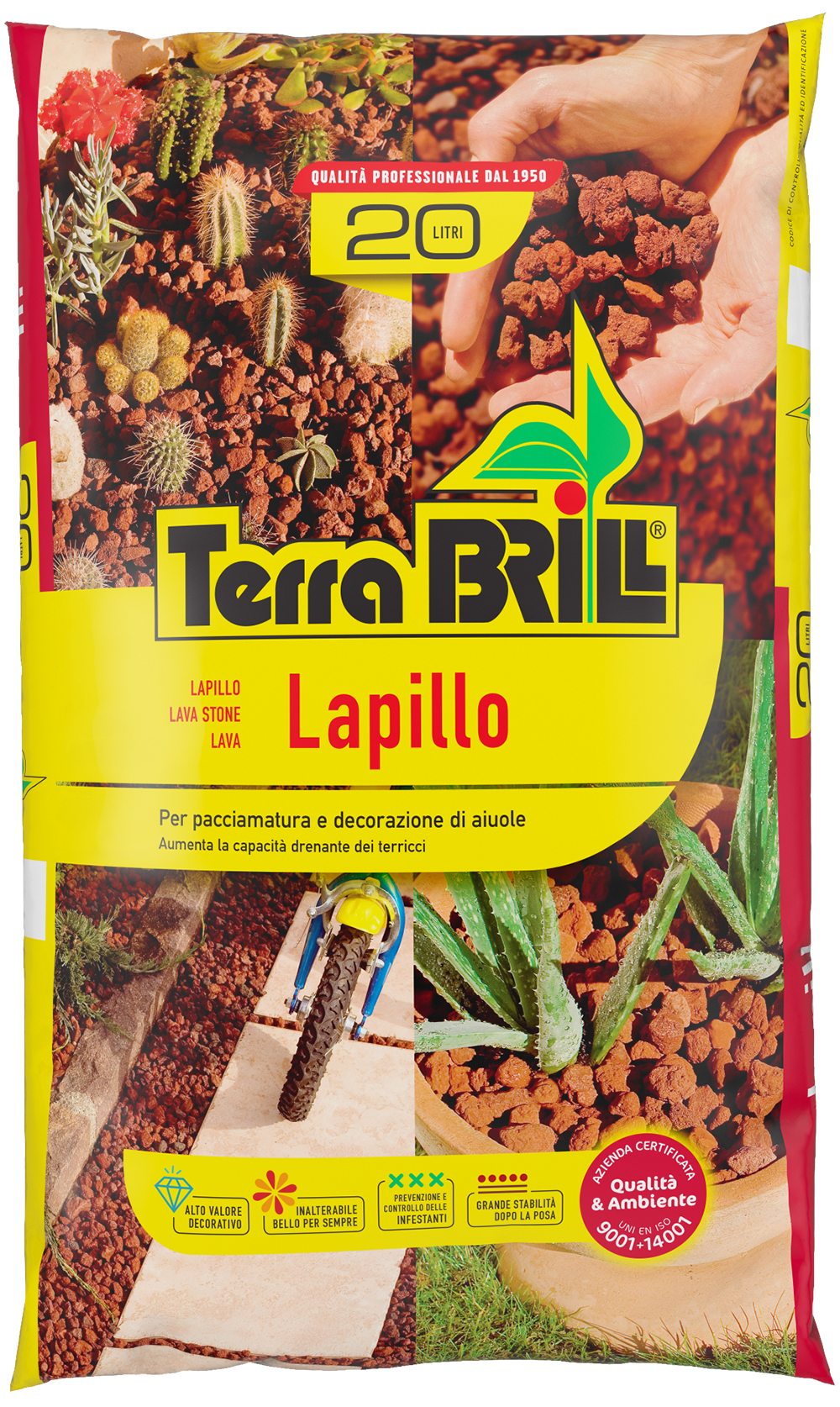 Per questo è importante la pacciamatura. TerraBrill Lapillo è composto da materiale lavico frantumato particolarmente resistente e durevole, ideale per utilizzo nel lungo tempo.