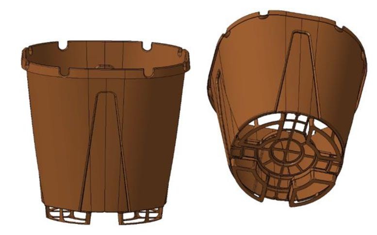 Lo sviluppo di un nuovo bordo consente di fissare il tubo di irrigazione direttamente al vaso ed é presente nei vasi da 25, 30 e 40 litri.